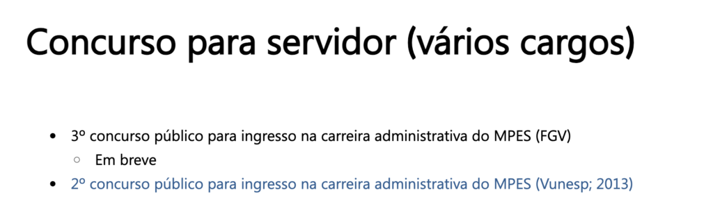 Em fevereiro, o MP ES informou o Direção Concursos que a comissão do certame está trabalhando em conjunto com a Fundação Getúlio Vargas para o planejamento, organização e realização do concurso para os cargos efetivos.