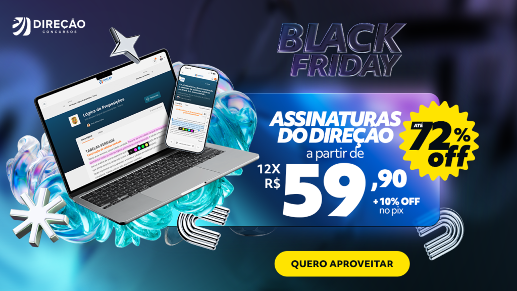 Aproveite a Black Friday do Direção Concursos e garanta sua assinatura com condições especiais! Prepare-se para os melhores concursos do país com os melhores professores.