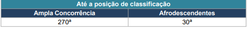 Serão convocados para as etapas seguintes – Prova de Títulos e Experiência Profissional (PTEP), Exame de Capacidade Física (ECAFI), Avaliação Psicológica (AP), Exame de Sanidade Física (ESAFI) e Investigação Social (IS) – os candidatos considerados APROVADOS na 1ª Etapa – Prova e considerados APROVADOS na 2ª Etapa – Prova Discursiva, e que, cumulativamente, estejam classificados dentro do limite descrito abaixo: