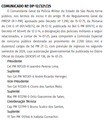 Está formada a comissão responsável pelo novo concurso PM SP (Polícia Militar de São Paulo) para Soldado!