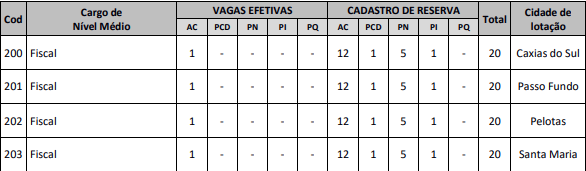Cargos e vagas do concurso público CORE RS