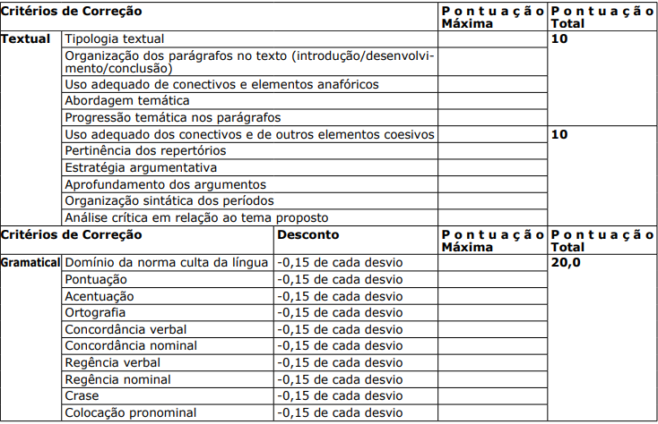 - Critério Mínimo para Classificação: Obter, no mínimo, 50% da pontuação total (20 pontos).