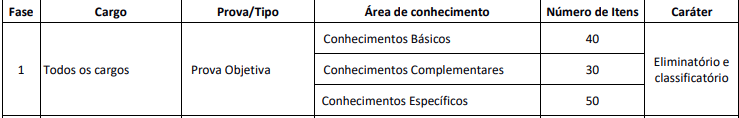 - Prova objetiva, de caráter eliminatório e classificatório, para todos os cargos; e