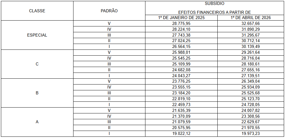Acompanhe, nas tabelas abaixo, a evolução da remuneração de cada cargo ao longo das carreiras: