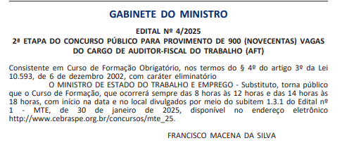 - Cargo: Auditor Fiscal do Trabalho
