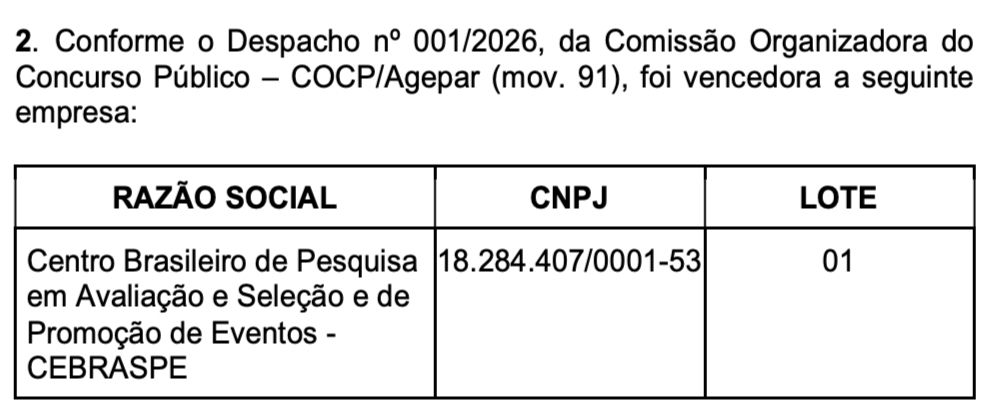 Vale destacar que a agência já contava com uma Comissão Organizadora do Concurso Público (COCP/Agepar), responsável por planejar, coordenar e administrar tanto a seleção da banca quanto o andamento do certame.