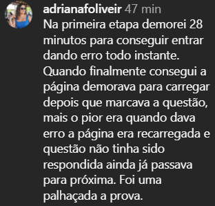 Candidatos ao edital da Agência Brasileira de Apoio à Gestão do Sistema Único de Saúde (AgSUS) reclamam da instabilidade do sistema de aplicação de provas. A seleção realizou aplicação em modalidade on-line no último final de semana.A aplicação ocorreu entre as 10h de 20 de fevereiro e as 18h de 21 de fevereiro, pelo sistema Avance Cebraspe. Dias antes da prova, candidatos testaram seu equipamento para garantir compatibilidade. No entanto, o teste prévio não impediu problemas.📘 Como Criar uma Rotina de Estudos FuncionalQuer transformar seus estudos e alcançar resultados reais? O Direção Concursos preparou um Ebook gratuito com o Robson Oliveira que vai te ensinar passo a passo como criar uma rotina de estudos que funciona de verdade!👉 Baixe agora o seu conteúdo gratuito!A prova foi dividida em blocos cronometrados pelo sistema, com a seguinte organização:Bloco 1: 40 minutos de duração.Intervalo: 10 minutos (único momento permitido para sair da frente da câmera).Bloco 2: Mais 40 minutos de duração.Durante todo o tempo, com exceção do intervalo, a câmera e o microfone dos candidatos ficaram ligados. O sistema utiliza inteligência artificial e fiscais remotos para gravar a tela, o som e a imagem.Candidatos relatam quedas no sistema que impediram a marcação das respostas. As queixas apontam que as falhas também atrapalharam a plena resolução de questões, uma vez que os candidatos ficaram apreensivos quanto à ocorrência de novas quedas ao responder os itens. Com os problemas na aplicação, os concorrentes levantam a possibilidade de reaplicação das provas em data posterior e anulação da aplicação on-line. Vale lembrar que as entidades responsáveis suspenderam a aplicação das provas, anteriormente previstas para 11 de janeiro de 2026.Confira a polêmica: Ver essa foto no Instagram Um post compartilhado por Victor Gammaro – Notícias de Concursos (@victorconcursos)Mantenha-se informado!O Direção possui um canal exclusivo para envio de notícias no WhatsApp! Além de todas as novidades do mundo dos concursos, lá você encontra e-books e outros materiais gratuitos, cupons EXCLUSIVOS de desconto, aulas GRATUITAS e muito mais.ENTRE AGORA NO CANAL DE NOTÍCIAS!Detalhes do edital AgSUSO edital da AgSUS abriu vagas para profissionais de níveis médio e superior, destinados à atuação nas Comissões de Coordenação Estadual (CCE) e Distrital (CCD) do Programa Mais Médicos. As contratações seguem o regime CLT, com contrato inicial de experiência de 45 dias, prorrogável por igual período.O processo seletivo contempla dois cargos, ambos com jornada de 40 horas semanais:Assistente Administrativo de CCE (Nível Superior) — R$ 5.800,00Agente Administrativo de CCE (Nível Médio) — R$ 3.900,00 O cargo de Assistente exige diploma de nível superior nas áreas de Saúde Humana, Educação ou Desenvolvimento Social, além de experiência profissional comprovada em atividades relacionadas ao cargo. Quanto ao cargo de Agente, a exigência é de certificado de conclusão do ensino médio, experiência profissional na área e domínio do Pacote Office.Candidatos passam por prova objetiva, com caráter eliminatório e classificatório. Diferente de seleções tradicionais, a prova será realizada de forma on-line (remota), utilizando o Sistema de Aplicação de Testes Eletrônicos do Cebraspe.A avaliação totaliza 40 itens para julgamento (Certo ou Errado), divididos em: Conhecimentos Básicos: 10 itens sobre Normativos da AgSUS e 10 itens sobre o SUS. Conhecimentos Específicos: 20 itens relacionados ao cargo escolhidoO candidato será eliminado se obtiver nota inferior a 20,00 pontos. A nota final no processo seletivo será a nota obtida nesta provaEstude com método, não no improvisoEstudar para concurso não é sobre estudar mais, é sobre estudar melhor. Com materiais organizados, resumos direcionados, marcações digitais, caderno de anotações, sistema de questões e suporte direto dos professores, você ganha tempo, clareza e constância — exatamente o que faz diferença na reta final. Tudo foi criado e validado por quem já passou em concurso e sabe onde o concurseiro mais perde pontos (e energia).Se você quer sair do improviso, estudar com estratégia e acelerar sua preparação, esse é o momento. Escolha seu plano, tenha acesso imediato aos cursos e transforme sua rotina de estudos agora — quem decide cedo, chega antes. 👉 Garanta sua Assinatura agora mesmo!