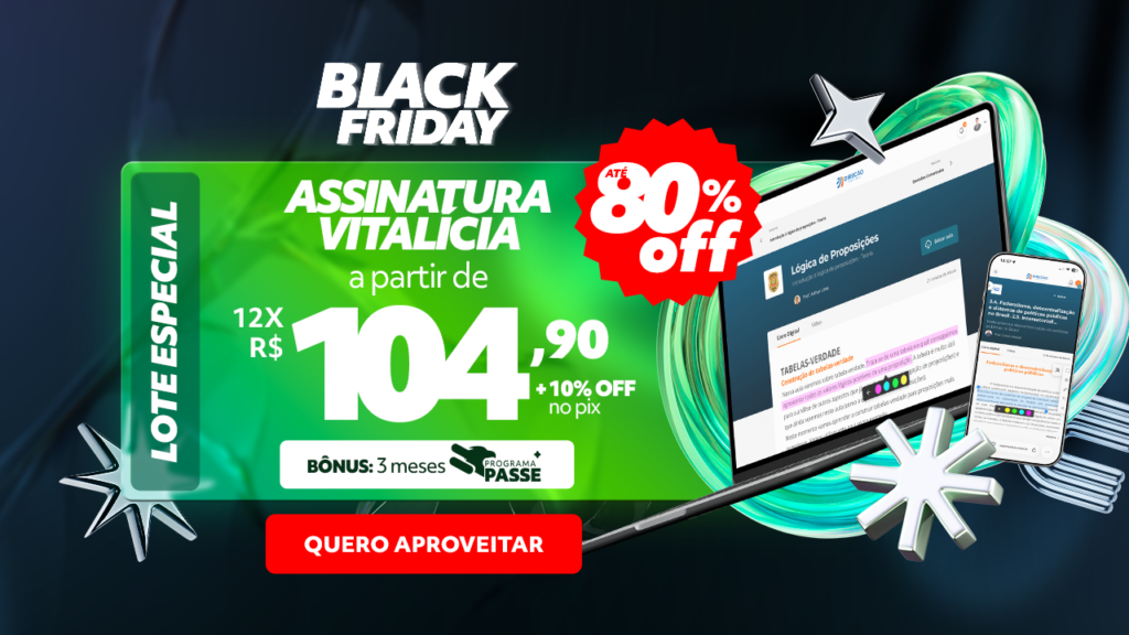 A data mais esperada do ano chegou! É a sua chance de garantir o acesso à plataforma que vai turbinar seus estudos para concursos públicos com um super desconto e condições que só aparecem uma vez.