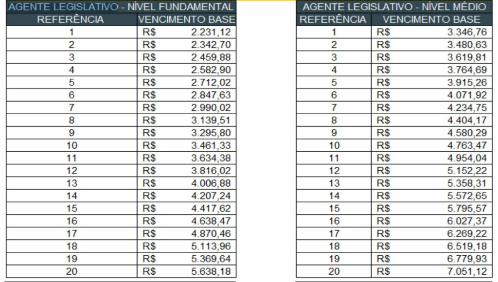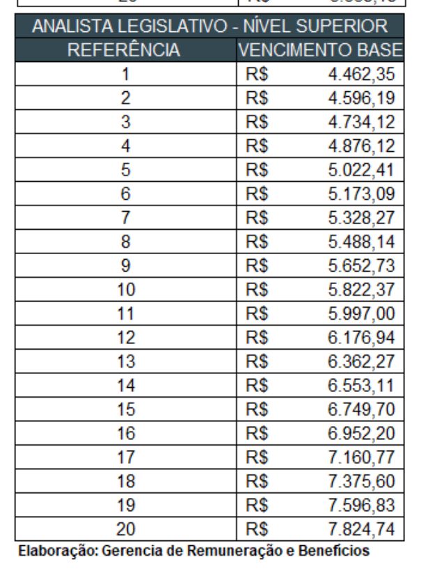 - Analista Legislativo: R$ 4.462,35
