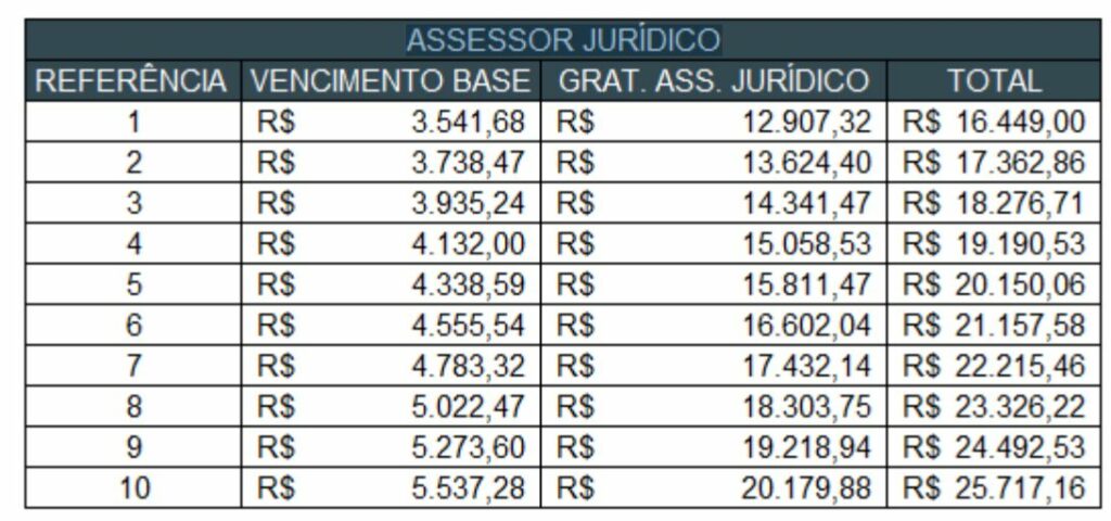 - Assessor Jurídico: R$ 16.449,00