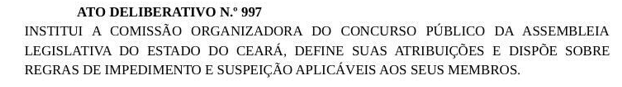 A Assembleia Legislativa do Estado do Ceará (ALECE) instituiu a comissão organizadora do concurso público. O grupo é responsável por planejar e fiscalizar as etapas iniciais do certame.