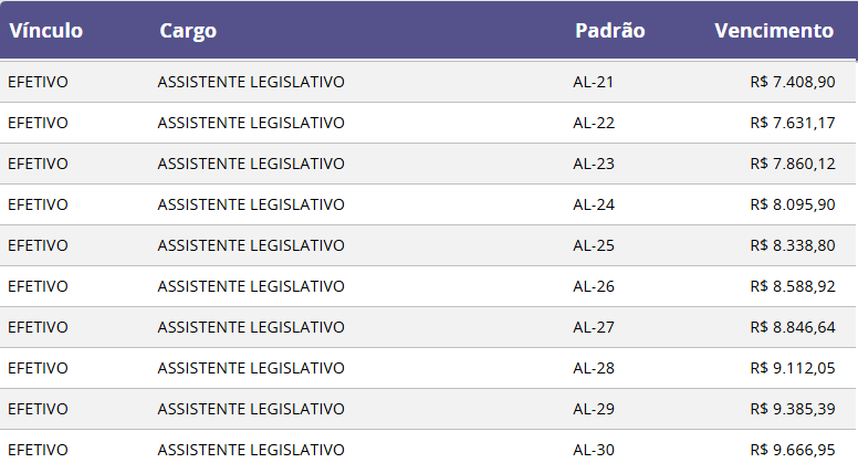 Salários do concurso ALEGO