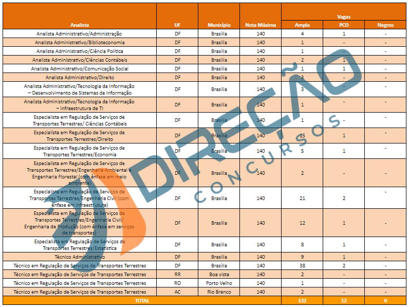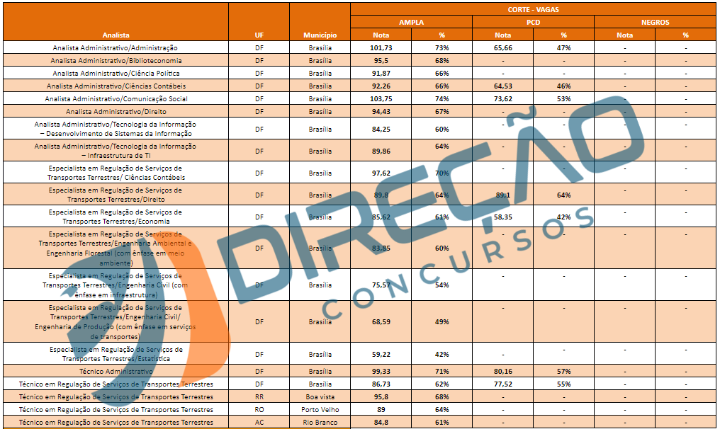 - Cargos: Especialista em Regulação de Serviços de Transportes Terrestres