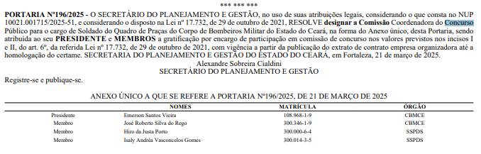 Um novo passo foi dado para a realização do novo concurso Bombeiros CE (Corpo de Bombeiros do Ceará): a comissão coordenadora foi formada!