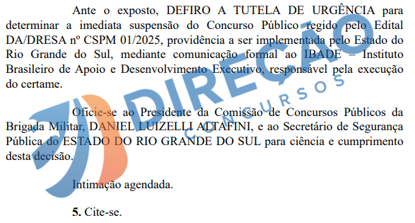 A magistrada ressalta, ainda, que a decisão liminar não possui caráter definitivo sobre a validade da legislação estadual, mas sim medida de prudência, tendo em vista o perigo de dano em se realizar o concurso sem que haja aprofundamento do mérito da demanda.