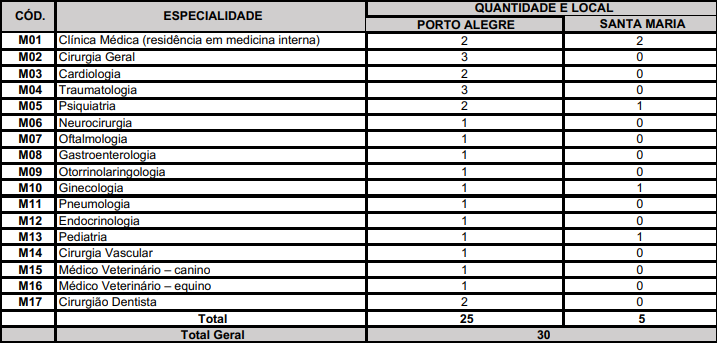 - Possuir curso Superior de Graduação na respectiva área de saúde e especialização (residência médica) na especialidade médica almejada, a serem comprovados mediante certificado ou diploma do ensino superior devidamente registrado e com inscrição ativa nos respectivos Conselhos, além do diploma ou Certificado de Conclusão do Curso de Pós-Graduação (especialidade médica) reconhecido pelo respectivo Conselho Regional (CREMERS – para os médicos) até a data da inclusão;