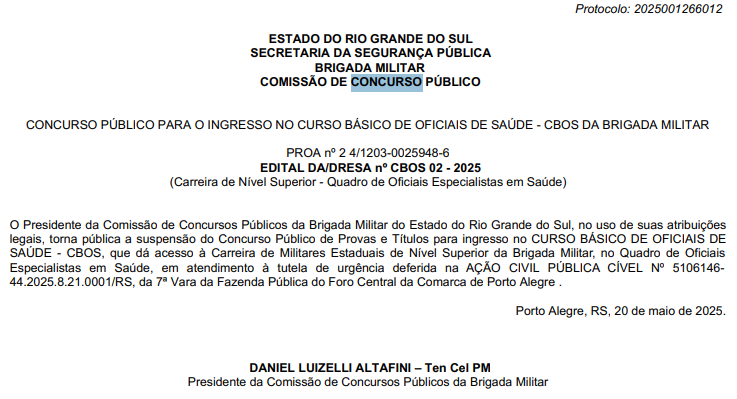 O concurso da Brigada Militar RS para Oficiais de Saúde está temporariamente suspenso!