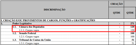 Essa mudança representa um avanço considerável em relação à previsão anterior, que estimava apenas 56 provimentos de cargos. De acordo com os documentos orçamentários, os 120 provimentos autorizados referem-se ao preenchimento de cargos vagos dentro da estrutura da Casa Legislativa.