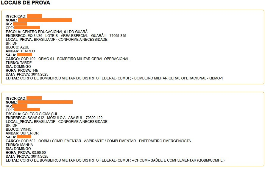 O CBMDF orienta que os concorrentes acompanharem a área do candidato no site da Idecan para possíveis atualizações e mudanças nos locais de prova.