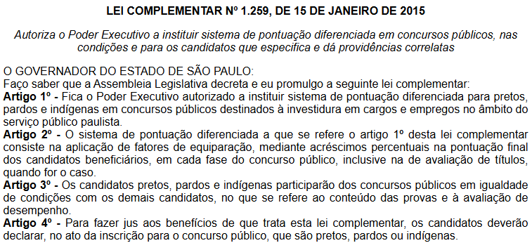 Confira trecho da LC 1259/2015: