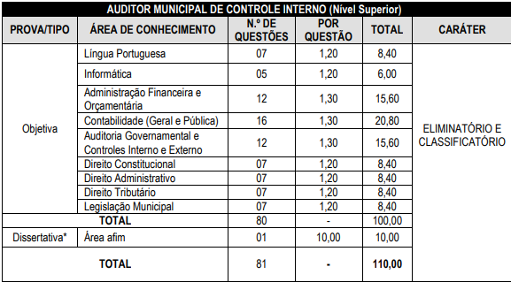 - 25 vagas para Auditor Municipal de Controle Interno (nível superior)