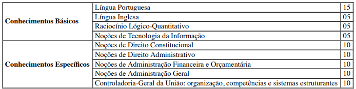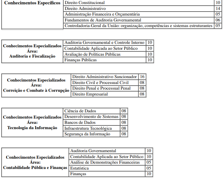Agora, confira as disciplinas cobradas para o cargo de Auditor: