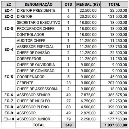 Isso significa que aproximadamente 91% das funções de direção, chefia e assessoramento são ocupadas por indicados políticos, em uma empresa pública criada em 2007 e que nunca realizou outro concurso além do suspenso.