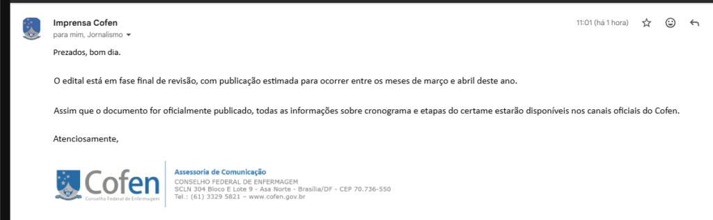 Segundo o Cofen, assim que o documento for oficialmente publicado, todas as informações sobre cronograma e etapas do certame estarão disponíveis nos canais oficiais do conselho.