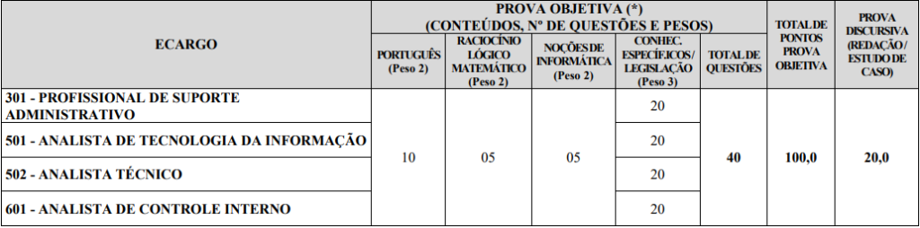 - Prova objetiva, de caráter eliminatório e classificatório, para todos os cargos; e