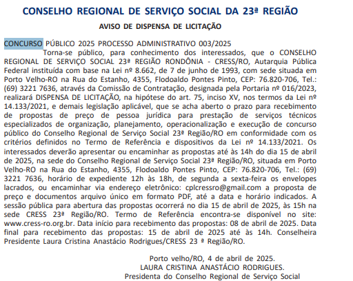 Um novo passo foi dado para a realização do novo concurso CRESS RO (Conselho Regional de Serviço Social da 23ª Região): foi iniciado o processo de escolha da banca organizadora!