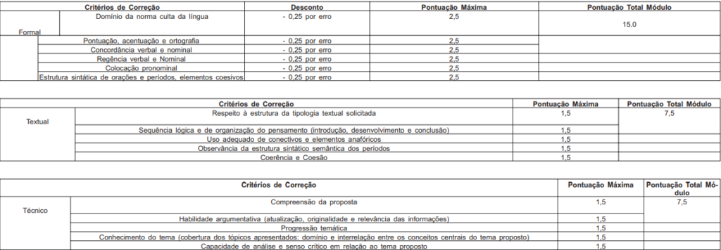Será considerado classificado na Redação o candidato que obtiver o mínimo de 15 (quinze) pontos.