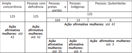 - Pessoas pretas e pardas: 15 vagas;