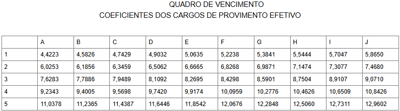 Confira, abaixo, a evolução remuneratória dos cargos: