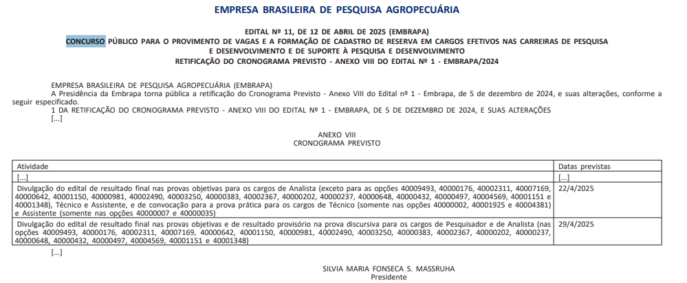 As provas do concurso Embrapa foram aplicadas no final de março, e o cronograma previsto para divulgação dos resultados das avaliações foi retificado!