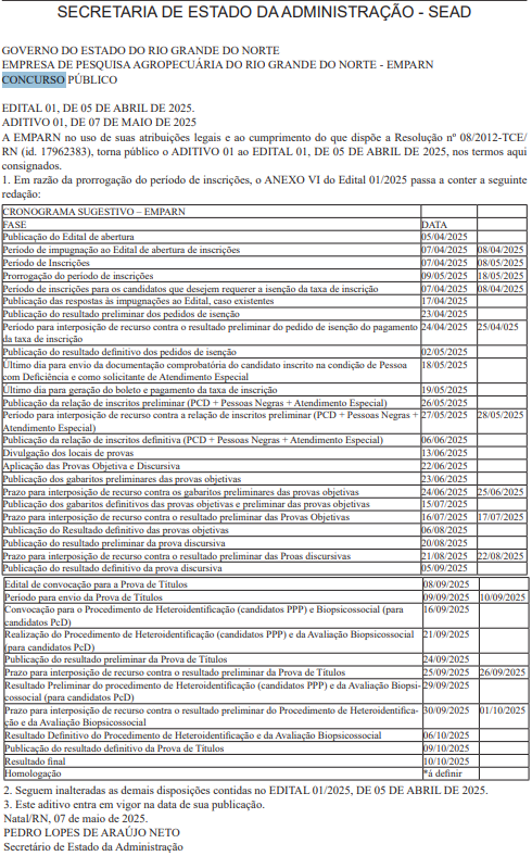 As inscrições do concurso EMPARN (Empresa de Pesquisa Agropecuária do Rio Grande do Norte) foram prorrogadas até o dia 18 de maio!