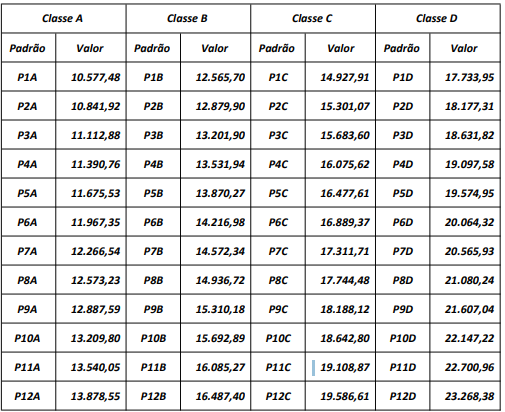 Veja a tabela de evolução remuneratória completa: