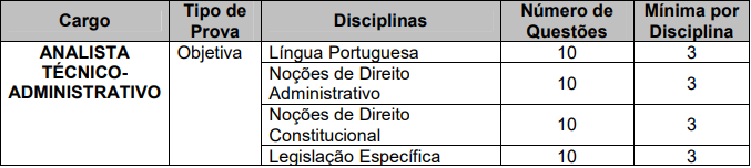 - Analista Técnico-Administrativo: 26 vagas;