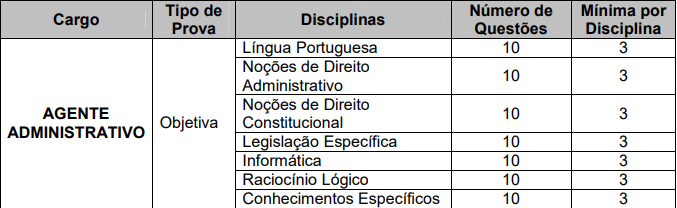 Agente Administrativo: 70 vagas.