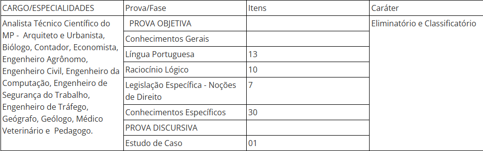 O edital MP SP oferta 13 vagas imediatas, além de formação de cadastro reserva para Analista Técnico Científico, nas seguintes especialidades: