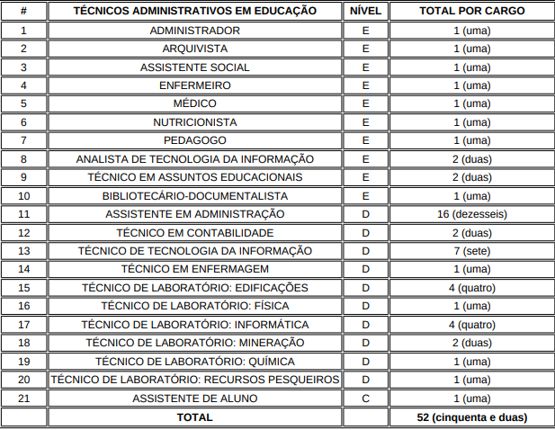 - Cargos: Técnico-Administrativo em Educação e Professor