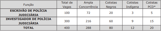 - Investigador de Polícia Judiciária: 300 vagas