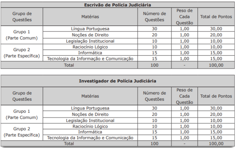 - Escrivão de Polícia Judiciária: 100 vagas