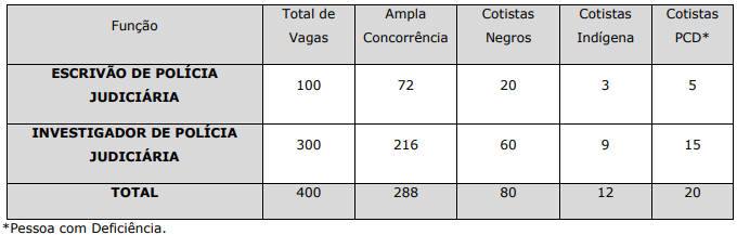 - Investigador de Polícia Judiciária: 300 vagas