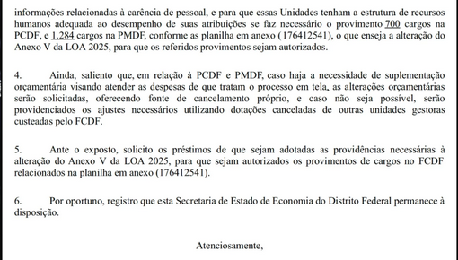 O secretário de Economia do Distrito Federal, Ney Ferraz Júnior, solicitou uma mudança na Lei Orçamentária Anual (LOA) para o provimento de cargos na Polícia Civil do Distrito Federal (PCDF).