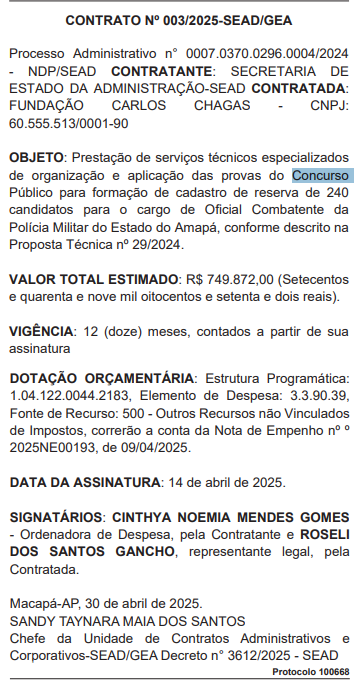 Vale lembrar que, em 2022, a contratação da Fundação Getúlio Vargas (FGV) chegou a ser anunciada para organizar o certame que, na época, ofertaria 400 vagas em cadastro reserva para Oficiais da PM AP e outras 280 oportunidades em cadastro reserva para o Corpo de Bombeiros.