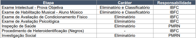 - Quadro de Praças Músico (QPM): 30 vagas;