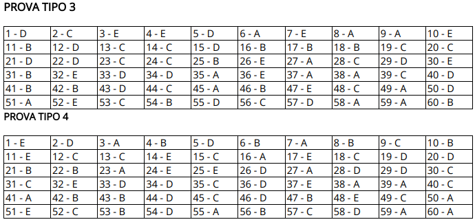 Os gabaritos foram disponibilizados neste 14 de março no site da Fundação Getúlio Vargas (FGV). Ainda foram divulgados os resultados dos recursos contra o gabarito oficial preliminar.