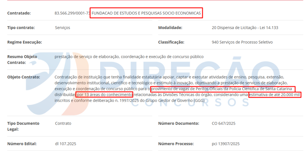 Conforme consta no Portal da Transparência do Poder Executivo estadual, o contrato foi assinado em 5 de dezembro e terá vigência até 31 de dezembro de 2026, período que compreenderá todo o processo de elaboração, execução e coordenação do concurso. A modalidade de contratação foi a dispensa de licitação.