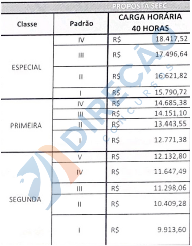 O salário inicial, que era de R$ 9.428,40, na terceira classe, passará a ser, segundo a proposta, de R$ 9.913,60, na segunda classe. Ao final da carreira, o Policial Penal receberá o subsídio de R$ 18.417,52. Confira a proposta abaixo: