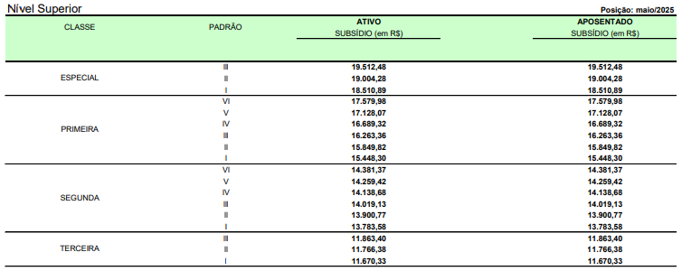 Com a soma dos valores, a remuneração inicial fica R$ 13.370, 23. Ao final da carreira, os Policiais Rodoviários Federais receberão o valor de R$ 19.512,48, que somando os benefícios fica R$ 21.212,38.
